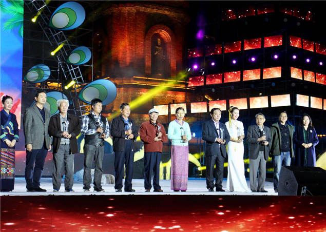 2017年12月14日晚,在2017“澜沧江·湄公河流域国家文化艺术节”闭幕式晚会上,由西双版纳州文体广电局、西双版纳州文学艺术界联合会举办的“首届西双版纳好书评选”活动颁奖仪式在美丽的澜沧江畔告庄西双景隆重举行。州委宣传部、州文体广电局有关领导到会祝贺并为10位获奖作者颁发奖杯。