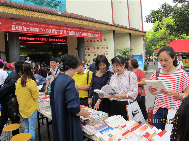 当日启动的活动内容有五项:一是举办图书专场阅读宣传活动。州图书馆工作人员精选纸质图书百余种(500余册)举办图书阅览专场,现场为市民办理图书借阅卡120张,开展图书阅读宣传和互动活动,引导广大市民走进阅读,体验书香之旅,在阅读中感受力量、感受快乐。二是举办傣文书法展。西双版纳州傣文书法艺术家协会精选出89幅优秀作品参展。活动邀请州傣文书法艺术家协会主席艾罕炳老师现场泼墨挥毫,短短3个小时写出汉文和傣文两种书法2 0余幅作品赠送市民。三是开展科普VR体验活动。现场让市民戴上VR眼镜,体验科学探索、地球生物、人体奥秘、宇宙星空、自然地理5大类别VR资源内容。四是开展听音乐知识趣味答题活动。邀读者参与库克音乐知识趣味答题,听歌答题,挑战有奖。五是开展宣传电子图书和数字图书馆推广工程活动。现场发放数字图书馆推广工程宣传资料300余份,送出印有西双版纳州移动图书馆二维码小礼品300余个,扫一扫即可下载移动图书馆带回家。启动仪式还邀请州妇联、州民宗局、州委党校、职业技术学院、团州委、州教育局、州文联、州报社、西双版纳杂志社等单位参加。整个“全民阅读月”系列活动内容丰富,为“书香西双版纳”营造良好的文化氛围,对促进全州的文化建设和精神文明建设将起到积极的作用。