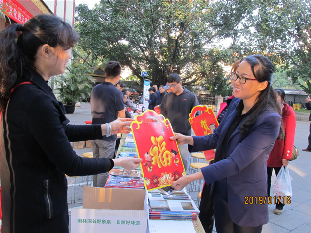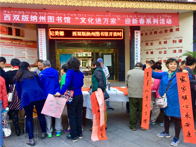 在活动中,州图书馆开展了读书阅览专场、推荐各类期刊、图书(包括中国古典文学、国内外原创文学)、推广科普知识、有奖知识抢答领文化礼包、推广微信公众号、移动图书馆、电子图书;邀请州书法家协会现场泼墨为群众赠送春联、福字等迎新春送祝福活动。活动现场人头攒动,市民争相领取文化惠民大礼包。当天,州图书馆共服务群众1500余人,赠送春联、福字1500余副,现场办理移动图书馆读者320余名。
