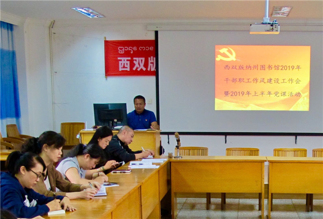 2019年4月2日,为深入贯彻学习州文旅系统干部职工作风建设会议精神,州图书馆组织干部职工学习《三严三实》专题讲座,召开工作作风建设会暨2019上半年党课活动。州图书馆主要负责人周杨鑫主讲。