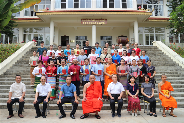 6月2日,由州图书馆和云南佛学院西双版纳分院联合举办的为期10天的傣文培训班结业,十三届全国政协民族和宗教委员会委员、中国佛教协会副会长、西双版纳州佛教协会会长、云南佛学院西双版纳分院院长帕松列龙庄勐向学员们颁发证书;并指出傣族文化源远流长,“多傣坦”承载着傣族的历史和文化,今后要多开办傣文培训班,将“多傣坦”世代相传。