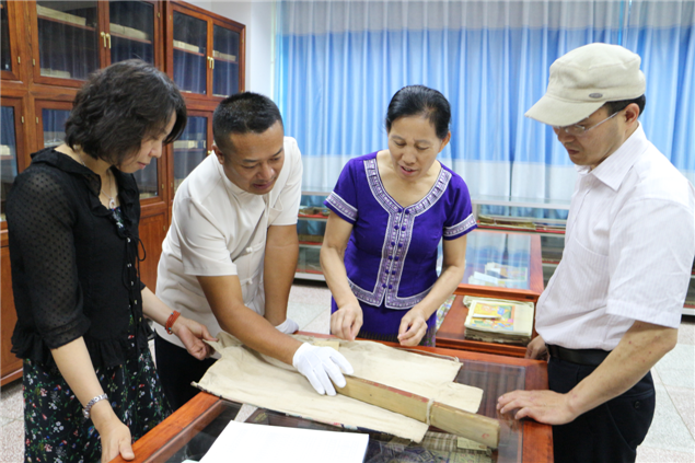 西双版纳州文化和旅游局副局长邱晓灵;西双版纳报社副总编、高级编辑、西双版纳傣学会副会长玉康龙参加了核验。(文图:西双版纳州图书馆 张春华)