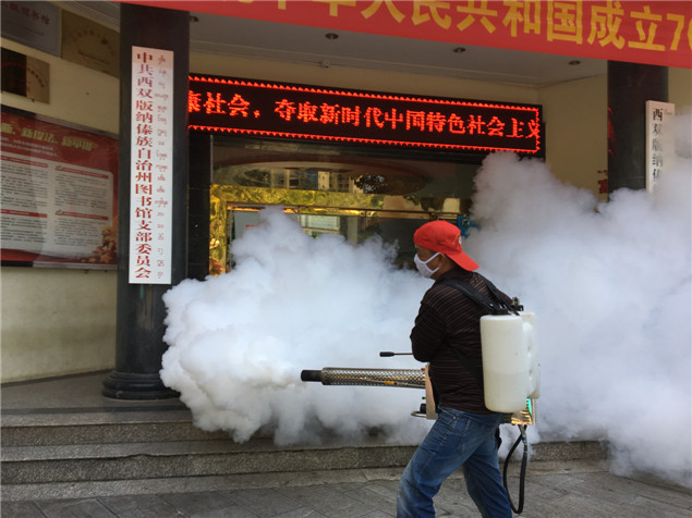 按照“1+N”网格化管理要求,州图书馆对办公区域、读者阅览的公共区域、街面商铺、金鹿街住宿区、商业区及公共场所翻盆倒罐,清除容器积水,打扫卫生,清除垃圾,对墙角、下水道、垃圾桶、阴沟、卫生死角等进行药物喷洒消毒和消杀工作。各网格小组成员坚持每天入户检查,在对网格区域疫情温馨提示的同时,积极宣传创文和登革热防控知识,提高了群众的知晓率,主动参与配合和防控工作。(文图:州图书馆 张春华)