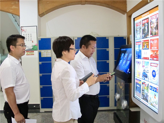 督查组先后查看了州图书馆的学雷锋志愿服务点、电子阅览室、公益宣传栏、图书自助借阅室、先进事迹专题展览、自习室、古籍保护中心、消防设施、馆内外环境卫生等,按照“创文”标准询问了行业规范;服务承诺相关情况,对公共文化设施创建工作基本达标给予肯定。对无障碍设施(含公共卫生间);未成年人思想道德建设;禁烟标识;“一米线”提示标识等实际点位存在不足进行现场指导。要求:对照文明城市测评标准,查漏补缺,不断完善提升,积极推进创文工作的开展。(文图:西双版纳州图书馆 张春华)