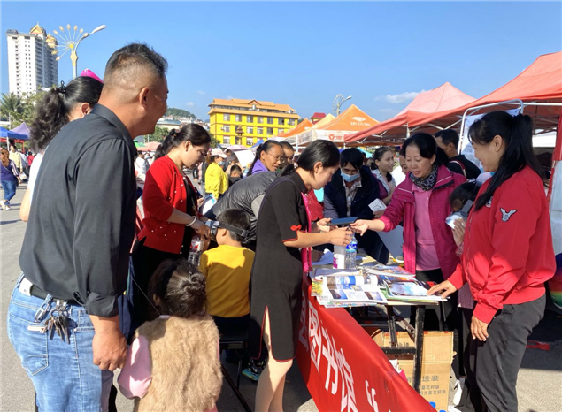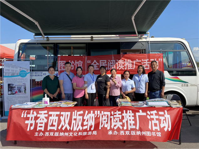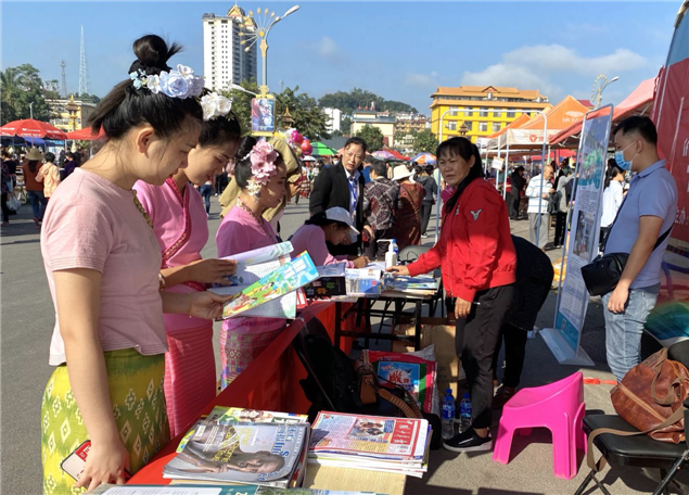 此次活动,由西双版纳州文化和旅游局主办,西双版纳州图书馆和勐腊县图书馆承办,图书馆工作人员精选100余册优秀经典图书,在勐腊县泼水广场进行推荐,现场为市民办理图书借阅证,宣传数字图书馆推广工程、APP、微信公众号,耐心解答读者咨询等服务,倡导爱读书,多读书,让更多的市民充分享受公共图书馆数字资源服务,丰富城乡居民精神文化生活。(文图:西双版纳州图书馆 张春华)
