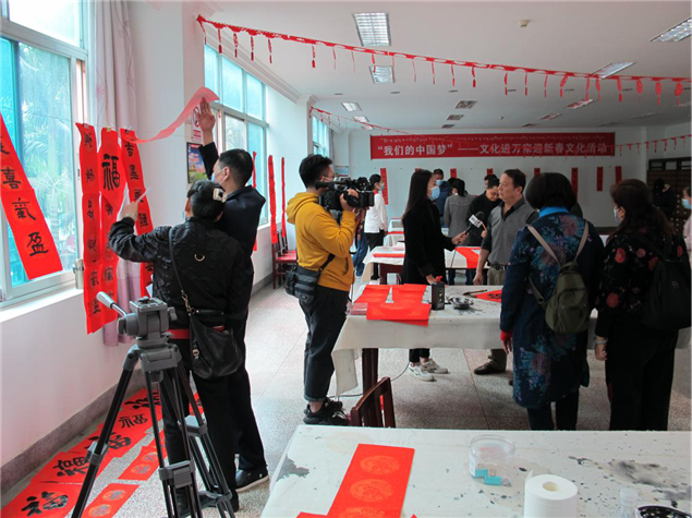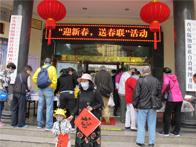 2021年2月8日至9日,由西双版纳州文化和旅游局主办,州图书馆承办的2021年“我们的中国梦——文化进万家迎新春”文化送祝福活动在州图书馆举行,为外来务工就地过年人员提前送上新春祝福,感受“春节不回家 图书馆是我家”浓浓的墨香和暖暖的文化氛围。