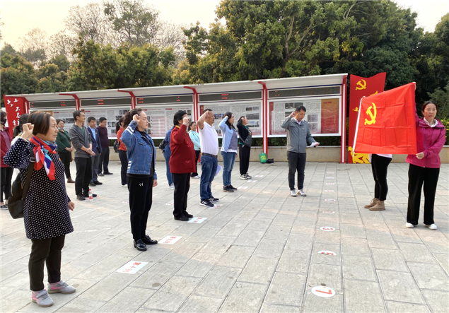 在解放纪念碑前,全馆干部职工面对“西双版纳解放纪念碑”向革命先烈集体默哀鞠躬致敬,聆听“西双版纳解放纪念碑”简介,全体党员在纪念碑和党旗前,重温入党誓词,不忘入党初心和使命,深切表达对党的忠诚。随后,大家又绕行参观纪念碑一周,感悟革命先烈敢于牺牲的革命精神,表达对革命先烈的敬意和哀思,都纷纷表示要弘扬爱国奉献精神,爱岗敬业,勇于创新。瞻仰完毕后,大家还在纪念碑周边开展了卫生清扫活动。(文图:西双版纳州图书馆 张春华)