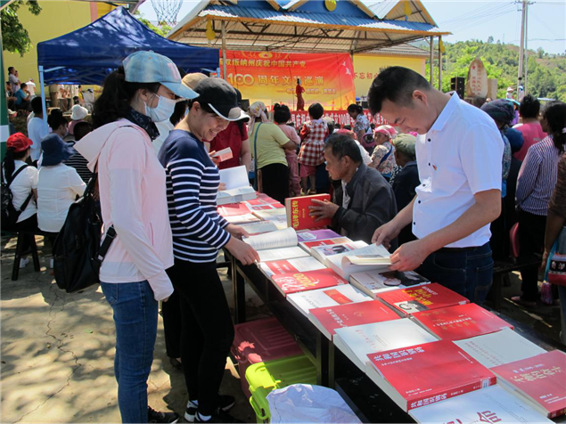 2021年5月7日,州图书馆参加由州文旅局组织到勐海县勐阿镇纳京革命根据地党史学习教育集中学习会暨“传承红色基因?弘扬奋斗精神”学习体验,开展党史图书红色经典阅读推广活动。