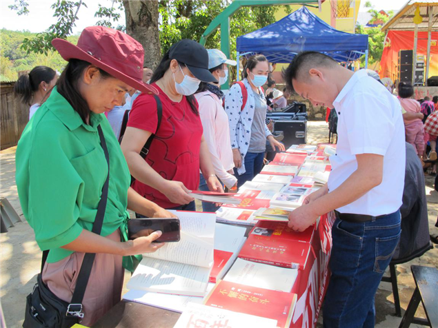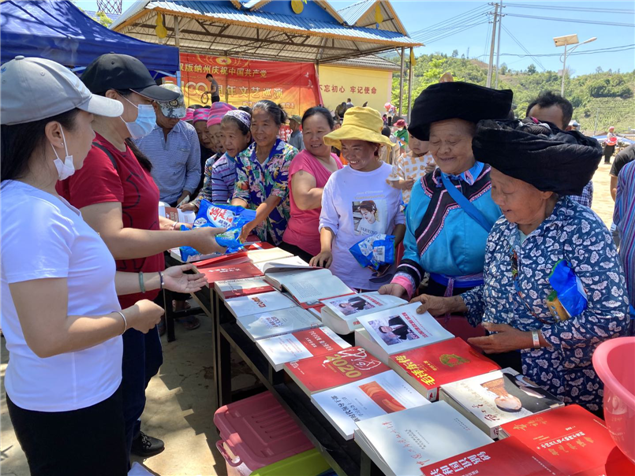 活动现场,州图书馆工作人员挑选《中国共产党简史》《不忘初心》《治国理政新实践》等200余本党史书籍,为前来参加活动的党员干部和那京村拉祜族村民推荐阅读党史书籍和红色经典,引导党员干部和群众学习党史知识传承红色基因,激发爱国爱党的热情,继承和发扬党的优良传统和作风。(文图:西双版纳州图书馆 张春华)