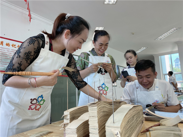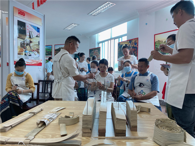 启动仪式结束后,志愿者们还参观了傣文古籍展览,并参加了州图书馆举办的“贝叶文献刻写培训班”。