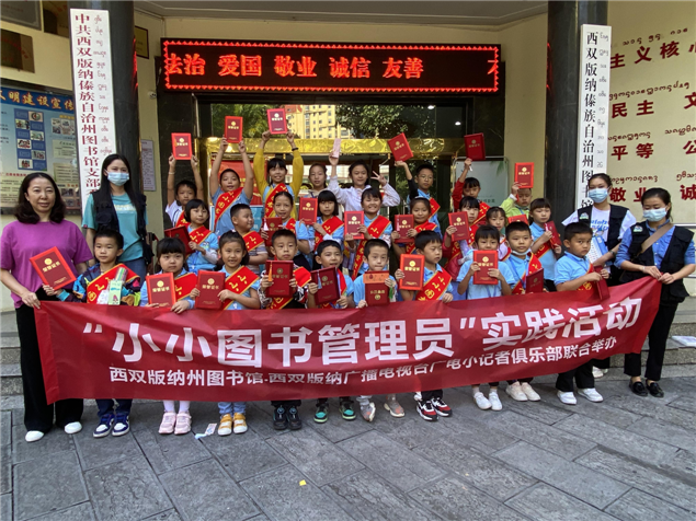2021年11月20日,一群身着“小小图书管理员”绶带的“小记者”在西双版纳州图书馆学习体验图书馆服务工作,让书香浸润心灵,用行动点亮文明。