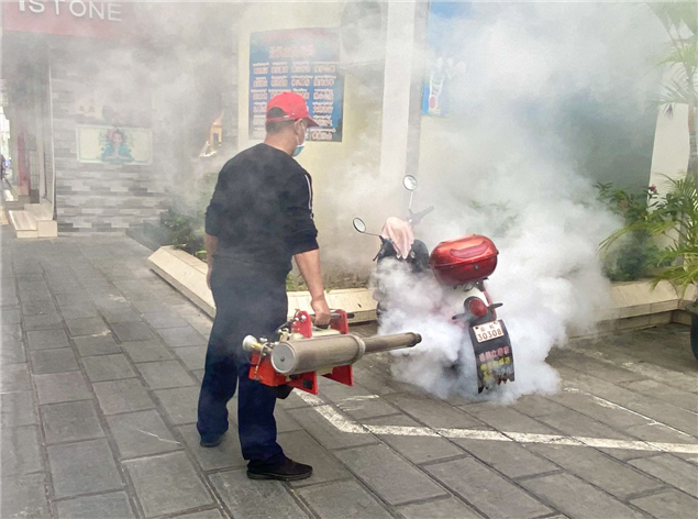 志愿者对图书馆公共区域、办公区和金鹿街网格责任区居民小区内、楼道转角等场所进行药物喷洒消毒和灭蚊消杀工作,开展以彻底清扫清除垃圾杂物,清除蚊媒孳生地卫生大整治、入户宣传为主题的爱国卫生运动,引导居民养成良好的文明卫生习惯。(文图:西双版纳州图书馆 张春华)