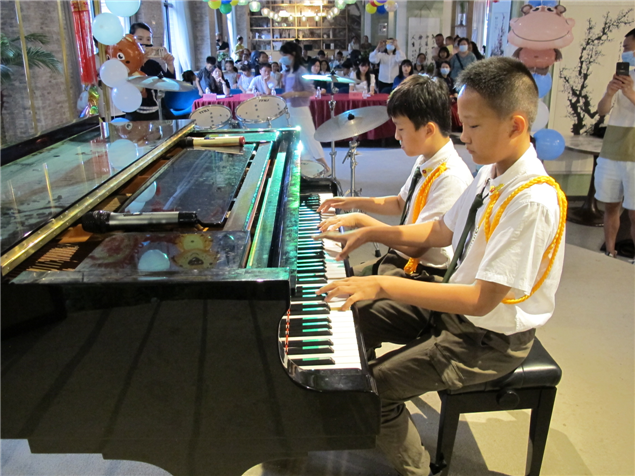 比赛现场精彩纷呈,各位小选手为观众们带来了古筝、葫芦丝、钢琴、架子鼓、小提琴、八音钟等多种演奏乐器。选手张沐紫表演的传统民族乐器古筝《站台风》获得少儿组一等奖;广子涵的钢琴表演《红星闪闪放光彩》获得儿童组一等奖;获奖选手李双印的架子鼓表演《By the way》动感欢乐的节奏吸引了全场观众;杨澍、邓凯文双人表演的钢琴曲《军队进行曲》令人印象深刻。