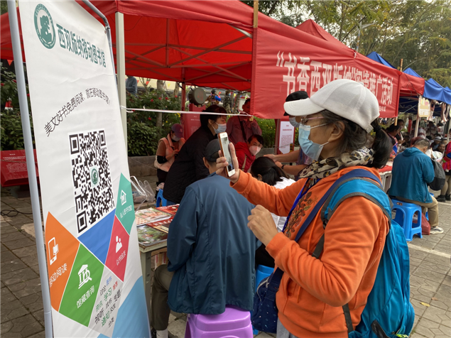 清晨广场上,基诺族男女老少都穿上了节日盛装,载歌载舞迎接本族的盛大节日——“特懋克”节。州图书馆为当地群众带去500余册涵盖党史、政治、农业科技、医疗健身、卫生环保、文学等各类图书,方便村民就近借阅,引导提高群众阅读能力,提升阅读热情,营造全民阅读的书香氛围。活动现场,群众们纷纷前来咨询,州图书馆工作人员与群众仔细交流,耐心解答,发放图书馆宣传手册,宣传推广微信公众号、移动APP,给群众提供最新优质的数字资源,最大限度满足乡村群众读者的需求。(文图:西双版纳州图书馆 张春华)