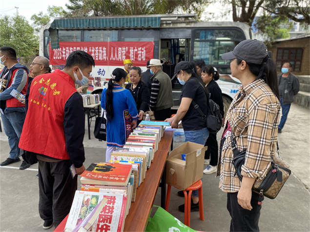 2023年3月24日,正值云南省滇剧院到勐海县举办“文化大篷车·千乡万里行”送戏下乡惠民演出活动,西双版纳州图书馆与勐海县图书馆协助开展“文化惠民,送书下乡”志愿服务全民阅读推广活动,受到欢迎。