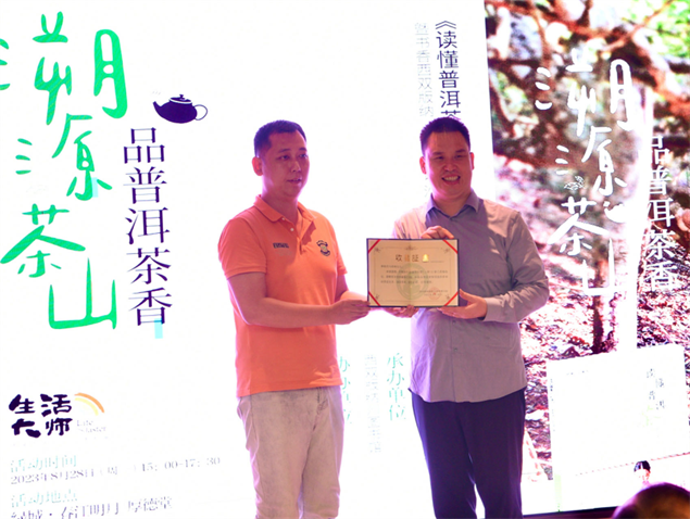 分享会上,《读懂普洱茶》的作者马哲峰与现场嘉宾分享了自己的创作感悟,各位文学爱好者们通过朗诵分享阅读体会,交流收获的普洱茶知识。该书以图文并茂的形式详细介绍了普洱茶的方方面面,从普洱茶的传说和身世之谜,到普洱茶的采摘、制作、发酵、精制、收藏、品评等,既有对史料文献的解读,也有作者在实地考察中的所见所闻、所思所感。让我们跟随作者的脚步,从“一山一茶,一茶一味”,漫步茶山体验云南风土人情的美好阅读,开启一段有关普洱茶的文化之旅,感受普洱茶之美。