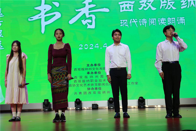 从“4·23 世界读书日”起,州图书馆联合新华书店开展“你选书 我买单”活动,进店读者可任选一本书办理借阅带走阅读。晚上,州图书馆联合西双版纳职业技术学院等单位部门举办文化进校园“诗意年华、如歌版纳”现代诗阅读朗诵分享会活动,邀请了西双版纳州著名主持人等进行朗诵、阅读分享经典。活动现场,大学生们激情澎湃,以情景诗朗诵的形式呈现经典,给人带来强烈的情感触动,激发了学生们积极向上的精神风貌,对校园文化建设起到了积极的推动作用。