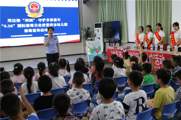 为进一步增强幼儿对毒品危害的认识,6月25日,在国际禁毒日来临之际,西双版纳州强制隔离戒毒所联合西双版纳州图书馆走进景洪市幼儿园,开展“远离毒品,珍爱生命”的禁毒宣传活动,用法律“利剑”守护多彩童年。