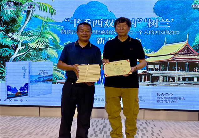分享会现场,大家通过阅读书中的精彩内容,分享阅读感受,作者存一榕畅谈了创作体会。活动最后,存一榕向州图书馆和一市两县图书馆等捐赠图书《疯狂的野猪》和《一个人的西双版纳》24册;州图书馆向作者颁发了“收藏证书”。(文图:西双版纳州图书馆 张春华)