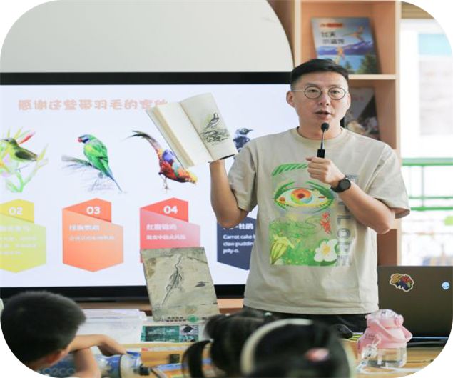 接着,老师展示了不同鸟类的喙,引导孩子们思考不同形状的喙是如何适应不同食物的。从尖锐的鹰喙到扁平的鸭喙,每一种喙都蕴含着鸟类生存的智慧。此外,老师还向孩子们介绍了鸟类产卵和孵化幼鸟的过程,以及它们中空的骨骼如何帮助它们轻盈飞翔。在温血动物的讨论中,孩子们对鸟类如何保持体温产生了浓厚兴趣,纷纷提出自己的见解。