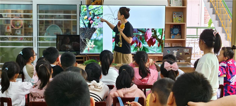 活动现场,40名自然博物爱好的孩子们在趣趣长长自然通识罗梓禾老师的带领下,开启了奇妙的可可之旅。通过“南北纬20度的语言”“可可的前世今生”“从种子到巧克力”“关注饮食健康”等环节,孩子们了解了可可树的生长环境、可可在不同文化中的地位和用途,学习了巧克力制作的步骤,还培养了对食品健康的关注和批判性思维能力。