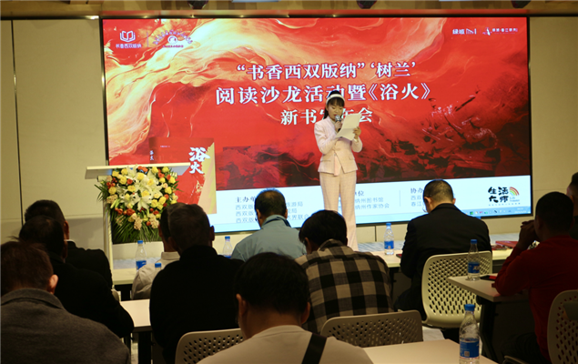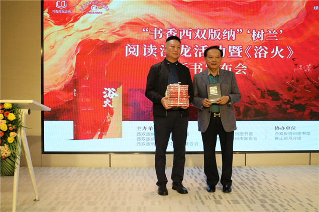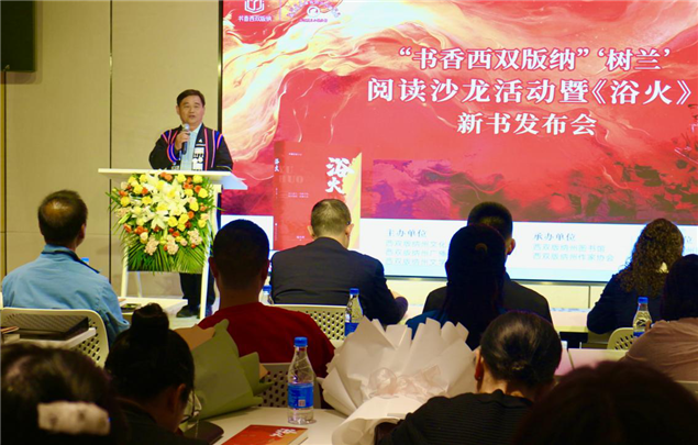 1月19日,西双版纳州文化和旅游局、州广播电视局、州文学艺术界联合会共同举办的“书香西双版纳”‘树兰’阅读沙龙暨《浴火》新书发布会在州图书馆春江明月分馆举行。有关单位负责人和文学爱好者参加了发布会。