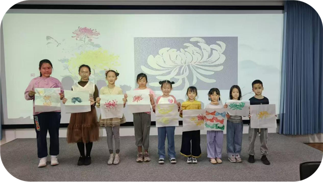 经过几天的学习与练习,孩子们笔下的菊花作品终于完整呈现。一朵朵栩栩如生的菊花在宣纸上绽放,或娇艳欲滴,或傲霜挺立。孩子们用色彩与线条,展现出对国画的理解与感悟,每一幅作品都独具特色。