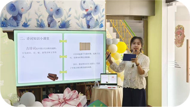 活动于上午9:30正式开始,主持人开场致辞点明读书日意义与活动主旨,迅速点燃现场氛围。随后的诗词知识小课堂以趣味课件展开教学,互动问答环节中,孩子们踊跃举手,答对者获赠精美礼品,学习热情高涨。