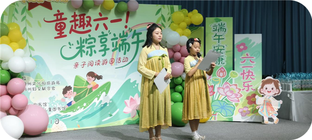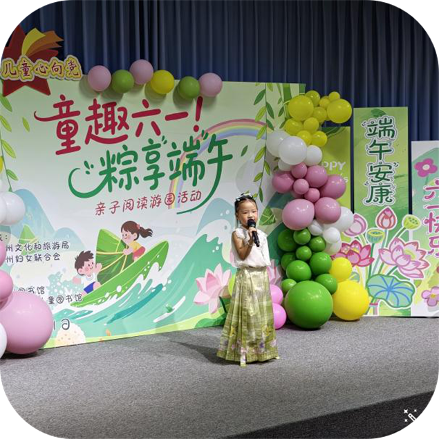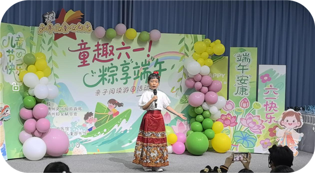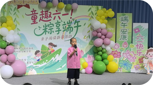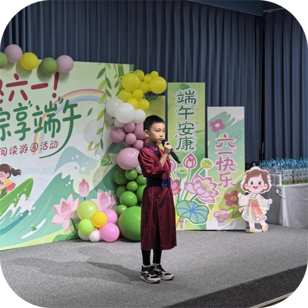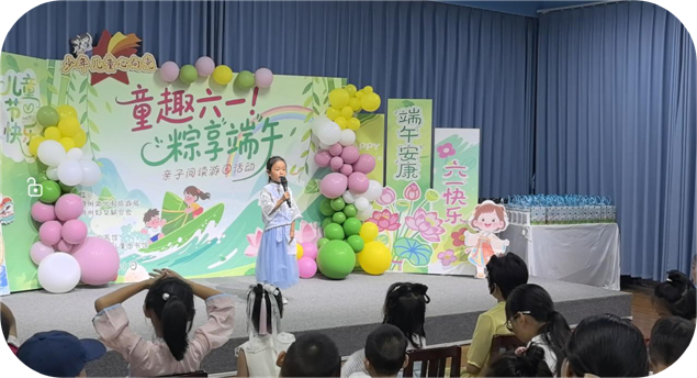 活动以亲子阅读拉开序幕,12组家庭纷纷登台,小朋友们用稚嫩而又充满感情的声音朗诵着与节日相关的诗词、童谣,如《端午蛋》《端午粽》《端午的味道》》等,展现出浓浓的节日氛围。 5 岁的杨远恕朗诵的《端午节》,6岁的保贝一朗诵的《月光下的中国》以及7岁的李怡琳朗诵的《粽香千载寄初心》,奶声奶气却节奏分明,赢得了现场观众的阵阵掌声;9 岁的赵若熹和妈妈带来的亲子朗读《中国话》,母女配合默契,让大家感受到了语言的魅力。孩子们还分享了端午民俗故事、儿童读物感悟、推荐好书,传递着阅读的乐趣。最后,活动为朗诵者和分享者颁发了 “阅读小达人” 证书及文具小礼品,孩子们接过证书和礼品时,脸上洋溢着自豪和喜悦的笑容。