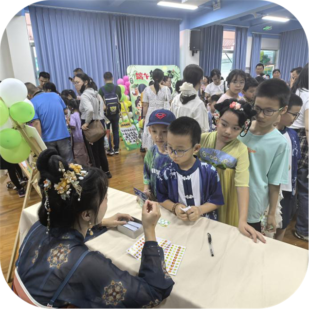 接下来的游园集章体验环节以 “传统民俗 + 趣味知识” 设计的四大游园项目,吸引了众多家庭组队参与集章挑战。在“射五毒” 投壶体验中,孩子们化身古代小英雄,感受端午驱邪纳吉传统;“钓粽子” 游戏考验手眼协调,钓起 “粽子模型” 的欢呼此起彼伏;脑筋急转弯与百科答题区,孩子们踊跃思考,现场充满欢声笑语。