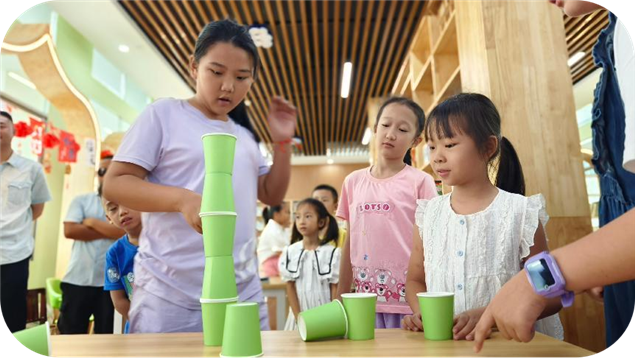 现场活动充满趣味。“亲子互动”环节,叠杯子挑战考验耐心与协作,蒙眼弹飞瓶盖游戏充满欢笑与挑战。随后的“亲子手工”环节,家庭共同制作温馨的手工相框。欢声笑语中,亲情慢慢变浓,默契与合作能力也慢慢提高。