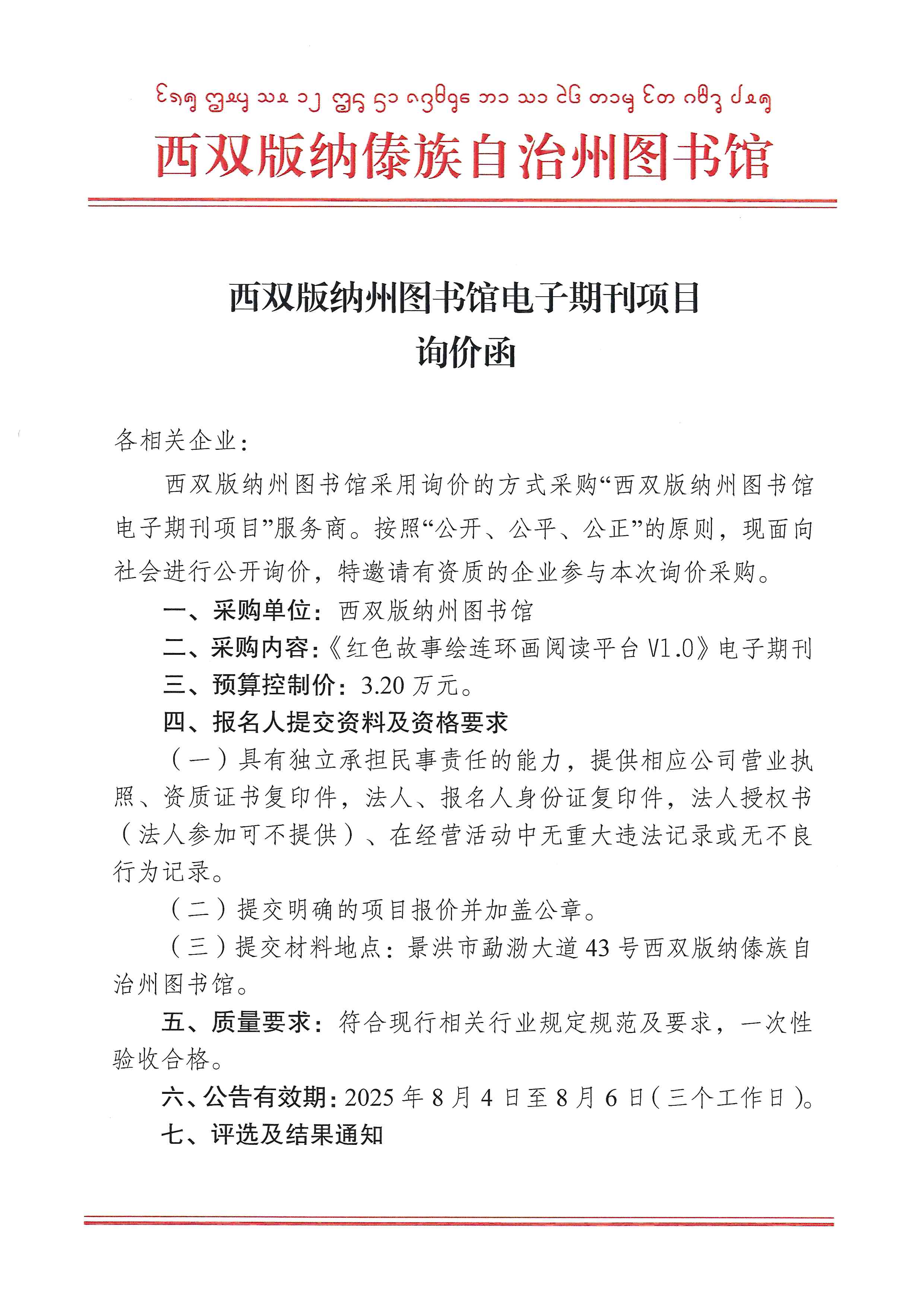 西双版纳州图书馆电子期刊项目询价函