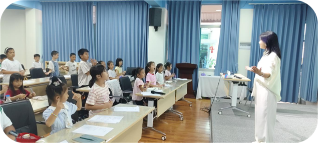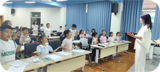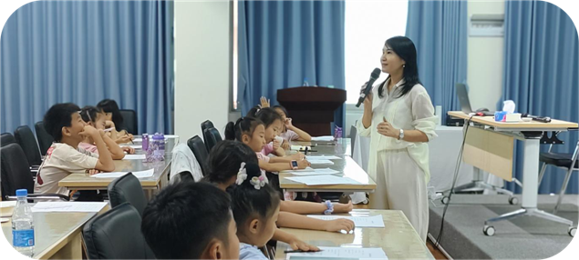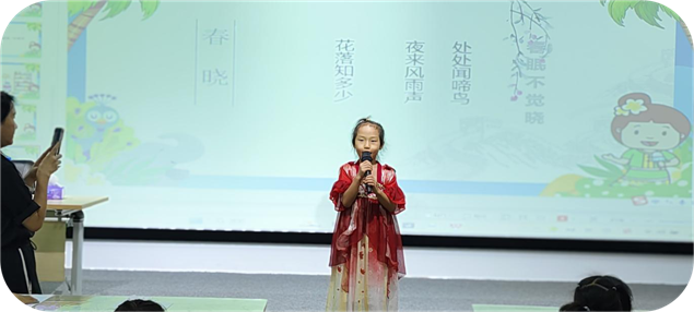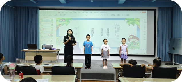 梁老师对每个孩子都耐心指导,确保大家都能学会技巧。培训中还安排了诗歌朗诵学习环节,孩子们在课前熟悉《快乐的小精灵》后,课堂上更踊跃地举手上台展示,表现十分积极。