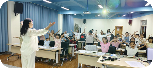 为解决“怎么读”的问题,梁老师特别强调要坚持晨读。为了让孩子们学会控制气息和声音,她带大家玩起了有趣的游戏:“闻花香”练习深呼吸,“火车进站”模仿气息流动,“吹纸巾”考验气息控制能力。在“喊山”“嘿哈”等发声游戏中,孩子们很快明白了用气息托住声音,用感情带动声音的技巧。