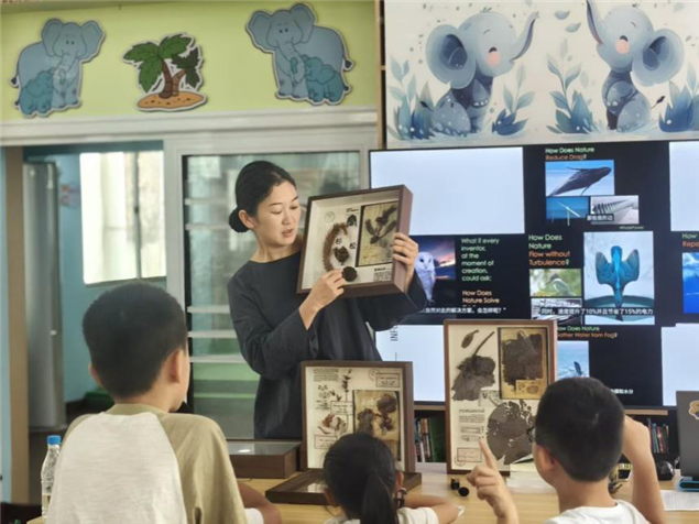 “雨林小小创新者”环节将课程推向高潮。罗老师和张老师展示了中科院植物园的标本,如杉松、赤葫芦等,让孩子们近距离感受雨林植物的魅力。同时,引导孩子们思考生态保护与开发运用的关系,从雨林保护者行动到开发运用的启迪,让孩子们树立了正确的环保观念。