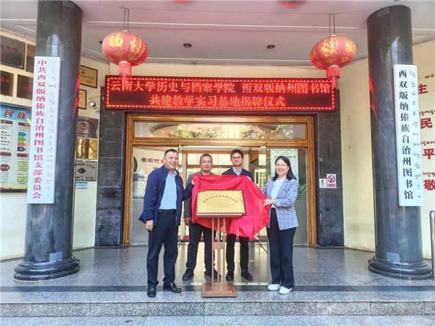 2025年11月24日,云南大学历史与档案学院与西双版纳傣族自治州图书馆共建的教学实习基地正式揭牌。云南大学历史与档案学院副院长周铭、黄体杨,教师胡莹、赵晓,西双版纳州文化和旅游局党组成员、副局长冷革萍,州图书馆相关领导及工作人员共同出席仪式。