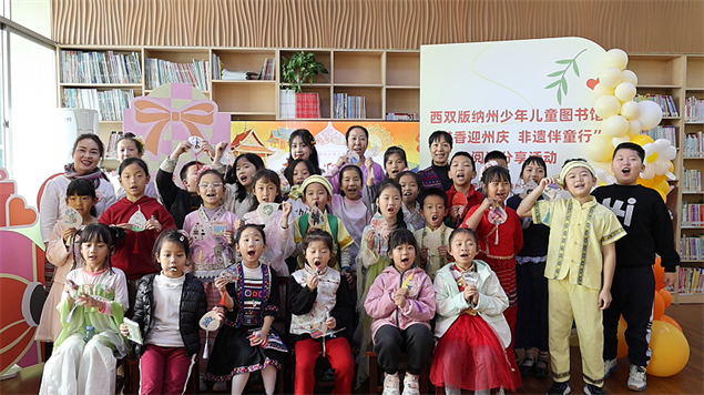 西双版纳傣族自治州成立73周年的喜庆萦绕全城,1月23日上午,州少年儿童图书馆二楼满室馨香、童趣盎然。“书香迎州庆 非遗伴童行”阅读分享活动如期举行,30名少年儿童齐聚一堂,在书香里探寻家乡密码,在指尖上传承非遗文化,用童真与热爱为家乡送上特别的生日祝福。