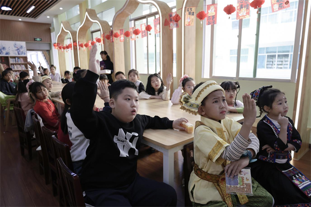 在阅读分享与趣味问答环节,孩子们踊跃举手,分享自己知道的家乡趣事、州庆见闻,或是共读时的新奇发现。“我和爸爸妈妈去赶摆吃了甜甜的菠萝饭!”“野象谷的大象鼻子会用鼻子接香蕉!”童真的分享赢得阵阵掌声。抢答环节中,孩子们凭借刚学到的知识积极应答,答对者收获精美小礼品,在欢乐互动中巩固了家乡文化知识。大家还纷纷送上祝福,“祝西双版纳越来越美”“愿家乡永远热闹幸福”“州庆快乐,家乡万岁”,简单的话语满含真挚情感。