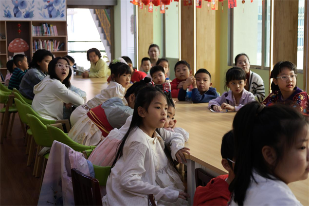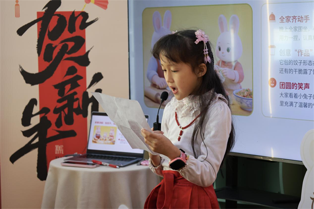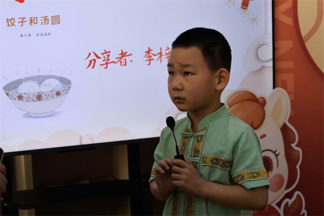 活动在温馨的绘本共读中拉开序幕。主持人带领孩子们共读绘本《团圆》,用生动有趣的讲述,让小朋友们真切感受家人团圆的温暖与美好。现场气氛热烈,孩子们踊跃分享自己的过年故事:本地小朋友分享了与家人包饺子、贴春联的欢乐时光,远道而来的小朋友们也纷纷讲述自己的旅行过年、异地团圆经历,大家在交流中感受浓浓的年味,现场暖意融融。