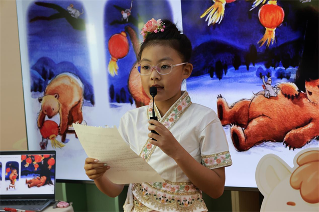 主持人还为孩子们介绍了春节传统习俗与傣族新年“桑堪比迈”,让小朋友们互相了解不同地域、不同民族的新年文化,进一步拉近彼此距离。随后,4位勇敢的小读者依次上台分享新春绘本,清脆的声音、童真可爱的表达,赢得台下阵阵掌声。