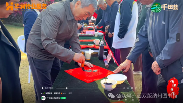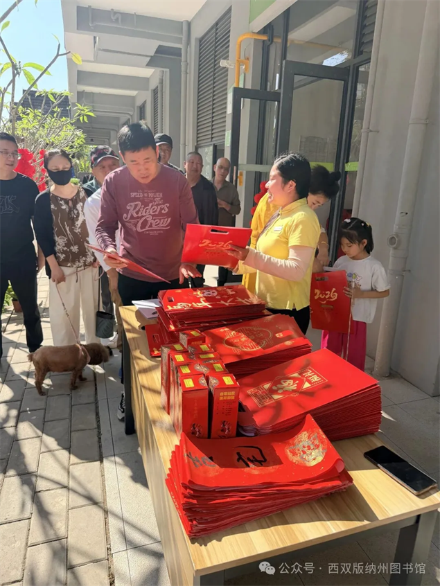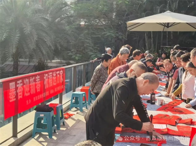 此次活动覆盖春江明月小区分馆、雨林华庭分馆、曼西缇分馆及孔雀台分馆四大阵地,依托西双版纳“总馆—分馆”的公共图书馆服务网络优势,让文化惠民服务触手可及、直达基层,既惠及本地群众,也为前来西双版纳旅居过年的各界人士提供贴心文化服务。活动以写春联、送福字为核心,兼顾民族特色与时代气息,特别邀请了州书法家协会、景洪市书法家协会的书法家及小区书法爱好者现场挥毫,既为群众和旅居群众送上新春祝福,也展现西双版纳多元文化交融的独特魅力,让旅居群众在异乡感受家的温暖。