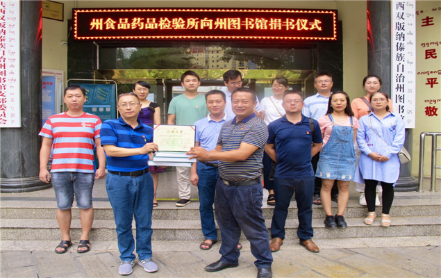 州食品药品检验所赠书 州图书馆颁发收藏证书